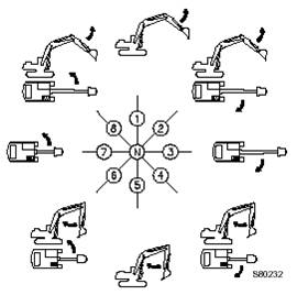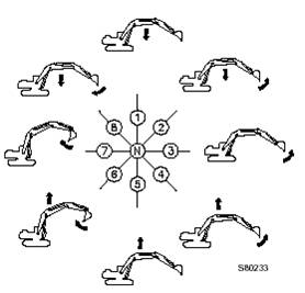 此款挖掘機(jī)具有多功能,可以安裝多種專(zhuān)用前部工作裝置,完成各類(lèi)作業(yè)。下面只對(duì)最簡(jiǎn)單的操作進(jìn)行說(shuō)明。