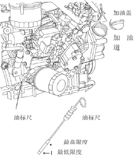 調(diào)整機(jī)器位置水平后,將油量計(jì)完全插入,測(cè)量油量高度.如果發(fā)動(dòng)機(jī)開(kāi)機(jī)后已加油,應(yīng)在發(fā)動(dòng)機(jī)停機(jī)后10分鐘以后檢查,確保機(jī)油回到機(jī)油盤(pán)中.