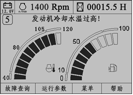 如果冷卻液溫度達(dá)到103℃,約10秒鐘后,監(jiān)控儀表提示“發(fā)動機(jī)冷卻水溫過高!”文字報(bào)警,同時蜂鳴器鳴叫,如圖所示。