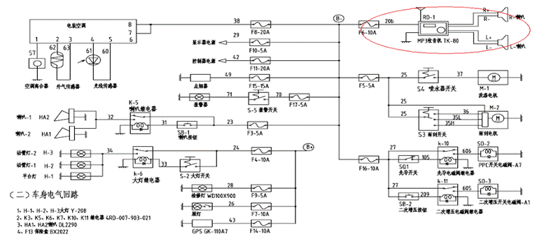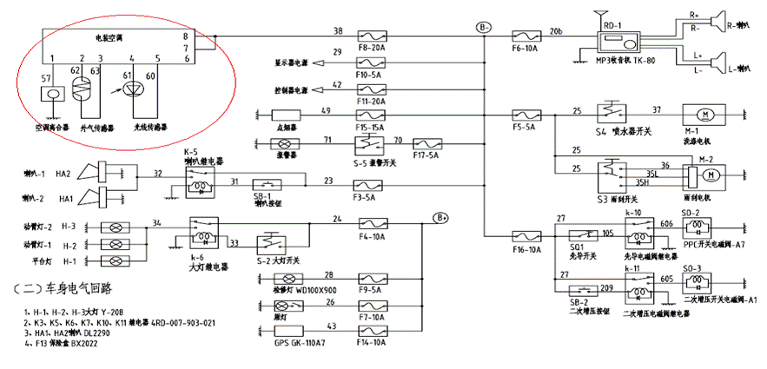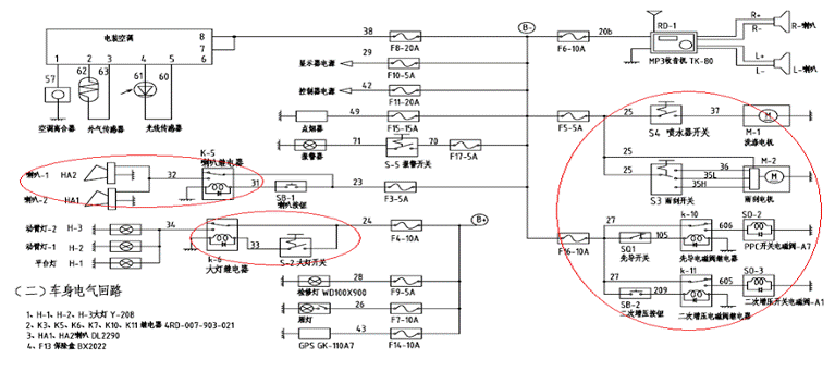 電源部分、發(fā)動機(jī)電氣部分、照明部分、電氣操縱機(jī)構(gòu)、