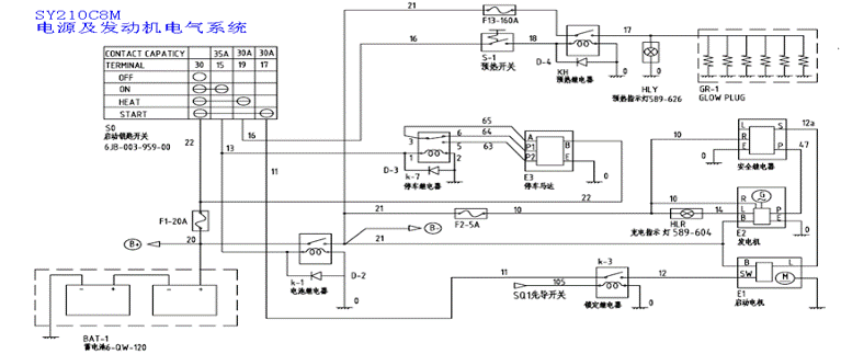 SY210C8M挖掘機(jī)電氣系統(tǒng)組成: