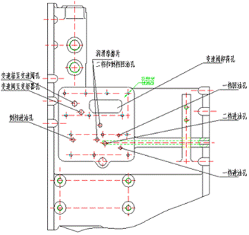 Ⅰ- Ⅰ為變速操縱油進(jìn)油口;Ⅱ-Ⅱ?yàn)樽兯傧淞苡瓦M(jìn)油口;Ⅲ-Ⅲ為變速箱冷卻進(jìn)油口。