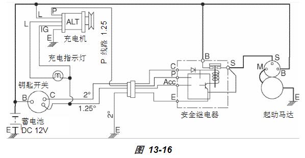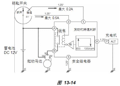 國(guó)產(chǎn)電機(jī)安全繼電器國(guó)產(chǎn)電機(jī)安全繼電器隨配備國(guó)產(chǎn)電機(jī)發(fā)電機(jī)的發(fā)動(dòng)機(jī)一起使用(發(fā)電機(jī)零件號(hào):119247-77100). 還要使用安全繼電器調(diào)節(jié)器。有關(guān)這些部件的組合,參見(jiàn)H-e:洋馬  TNV  發(fā)動(dòng)機(jī)選裝件目錄中的限流器當(dāng)充電機(jī)轉(zhuǎn)速超過(guò)   1975  ±140  min-1時(shí),安全繼電器會(huì)切斷起動(dòng)馬達(dá)電路。例如,當(dāng)充電機(jī)皮帶輪與曲軸皮帶輪的傳動(dòng)比為  0.6  時(shí),起動(dòng)馬達(dá)會(huì)在發(fā)動(dòng)機(jī)轉(zhuǎn)速達(dá)到  1191 ± 84 min-1時(shí)自動(dòng)關(guān)閉。此后,意外操作鑰匙開(kāi)關(guān)不能使起動(dòng)馬達(dá)通電。關(guān)閉起動(dòng)馬達(dá)后,當(dāng)用鑰匙開(kāi)關(guān)斷電時(shí)安全繼電器會(huì)停止。如果鑰匙開(kāi)關(guān)在接通位置  (ON)  時(shí)發(fā)動(dòng)機(jī)因任何原因而停機(jī),不先把鑰匙開(kāi)關(guān)轉(zhuǎn)回?cái)嚅_(kāi)  (OFF)  位置就不能用鑰匙開(kāi)關(guān)使起動(dòng)馬達(dá)通電。