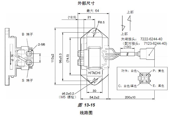 日立安全繼電器日立安全繼電器隨配備日立充電機(jī)(零件號(hào)  129136-77200)的發(fā)動(dòng)機(jī)一起使用。充電機(jī)應(yīng)有一個(gè)  P  端子。但是,這種安全繼電器只能兼容于不低于  12V/60A  的日立充電機(jī)。它與其它充電機(jī)不兼容。當(dāng)充電機(jī)轉(zhuǎn)速超過(guò)  1400 ±120 min-1(環(huán)境溫度下)時(shí),安全繼電器會(huì)切斷起動(dòng)馬達(dá)電路。例如,當(dāng)充電機(jī)皮帶輪與曲軸皮帶輪的傳動(dòng)比為  0.6  時(shí),起動(dòng)馬達(dá)會(huì)在發(fā)動(dòng)機(jī)轉(zhuǎn)速達(dá)到  840 ± 72 min-1時(shí)自動(dòng)關(guān)閉。此后,意外操作鑰匙開(kāi)關(guān)不能使起動(dòng)馬達(dá)通電。接合后,安全繼電器會(huì)在充電機(jī)轉(zhuǎn)速達(dá)到不高于  498  min-1(環(huán)境溫度下)時(shí)斷開(kāi)。例如,當(dāng)皮帶輪傳動(dòng)比為0.6 時(shí),發(fā)動(dòng)機(jī)轉(zhuǎn)速會(huì)達(dá)到不高于  299  min-1。由于普通發(fā)動(dòng)機(jī)的低怠速轉(zhuǎn)速至少約為  800  min-1,安全繼電器起效一次后會(huì)在所有發(fā)動(dòng)機(jī)轉(zhuǎn)速范圍下繼續(xù)起效。