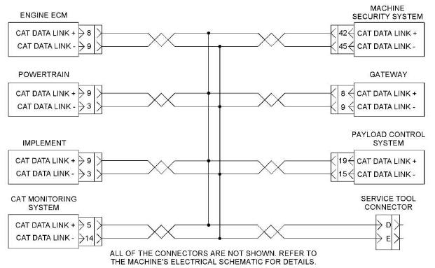 卡特數(shù)據(jù)鏈路接線圖(范例)測試步驟  1.檢查電氣接頭和電線A.斷開發(fā)動機ECM的電源
