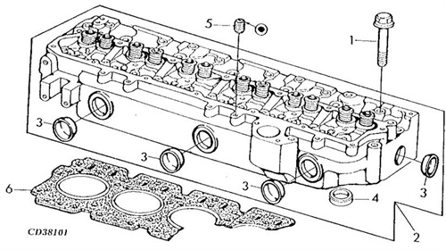 4.使用適當(dāng)?shù)钠鸬踉O(shè)備拆下JOHN DEERE六缸發(fā)動(dòng)機(jī)氣缸蓋,以防止處理時(shí)損壞氣缸蓋墊片。請參見組020中的拆卸氣缸蓋序列號(-199999)。
