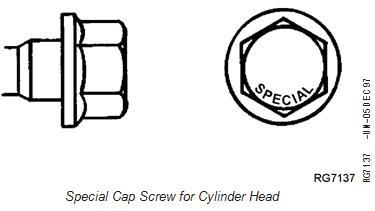 IMPORTANT: Only ASTM Grade 180 Flanged-Head cap screws marked “SPECIAL” (upper illustration) are recommended for use on 6081 engines. ALWAYS use NEW cap screws when installing cylinder head. Cap screws may be used only one time.
