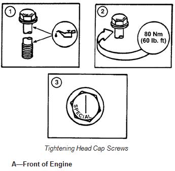 1.用清潔的SAE30強(qiáng)鹿約翰迪爾柴油發(fā)動(dòng)機(jī)機(jī)油潤滑帶帽螺釘,并將其安裝在如前所述的正確位置。