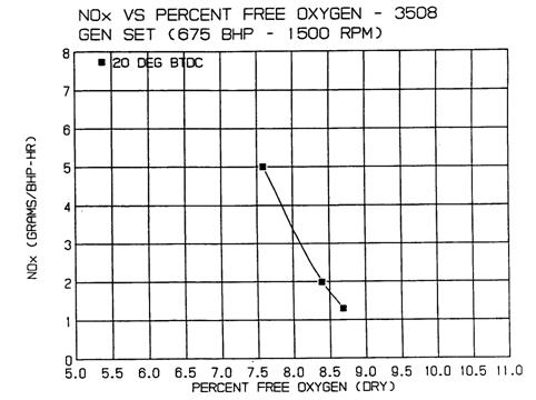 卡特CAT發(fā)動機3508通用設置氧氣排放圖的狀況在穩(wěn)定工作狀態(tài)下所獲得的讀數