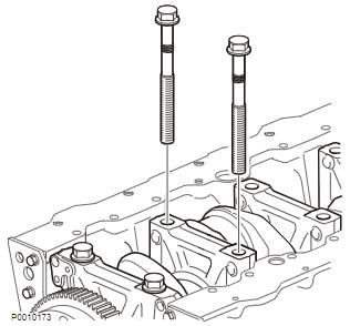 6 根據(jù)標(biāo)記安裝軸承蓋。使用螺栓使軸承蓋保持豎直。擰緊螺栓,從而將軸承蓋向下拉到發(fā)動(dòng)機(jī)機(jī)體上。檢查并確認(rèn)曲軸可以轉(zhuǎn)動(dòng)。使用 885811 計(jì)時(shí)工具、885633 扭矩倍增器和885648 反向固定器根據(jù)特殊緊固扭矩 8 頁扭矩和角度緊固軸承蓋螺栓。再次檢查并確認(rèn)曲軸可以轉(zhuǎn)動(dòng)。