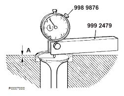 閥座,更換缸蓋和閥已拆下。工具9989876 千分表9992479 千分表架1 如果無法獲取滿意的密封件或距離(A)超出技術(shù)參數(shù)的值時必須更換閥座;參見技術(shù)數(shù)據(jù) 31 頁。