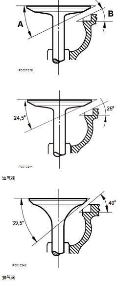 4 閥座配合面涂上了一薄層標(biāo)記顏料之后立即使用閥座儀表檢查閥座角度。P00070762524,5P0010244進(jìn)氣閥4039,5P0010245排氣閥21-4 閥機(jī)構(gòu)