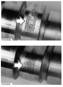 更換指南在正常情況下,沃爾沃發(fā)動機凸輪軸凸角表面會不平整。這不一定表示必須更換凸輪軸。這些標記對于沃爾沃發(fā)動機性能或發(fā)動機及其部件的使用壽命并沒有任何負面影響。下面給出了可接受的磨損以及不可接受的磨損的示例。