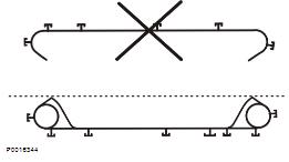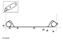 5 密封件必須使用沃爾沃遍達(dá)零件號 1161277 膠合。在兩半密封件相遇地方的上面和下面涂抹一層膠水。在圖示點(diǎn)涂抹膠水。擦去多余的膠水。安裝前等待 30 分鐘以上,以讓膠水干燥