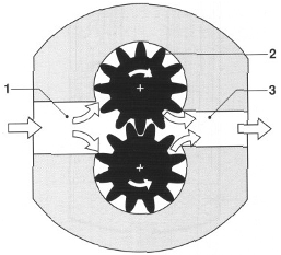 1-吸油端 2-驅(qū)動齒輪 3-壓力端
