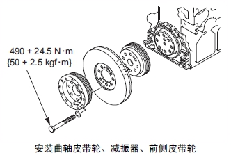 3.4 安裝三菱發(fā)動(dòng)機(jī)曲軸皮帶輪、減振器、前側(cè)皮帶輪